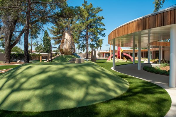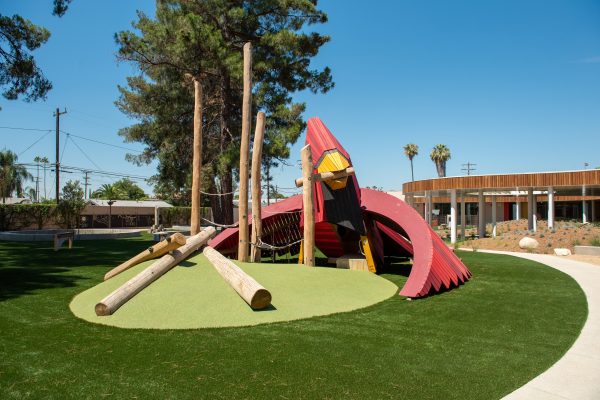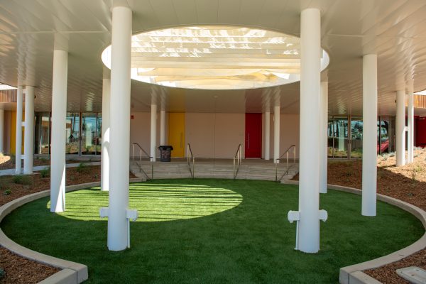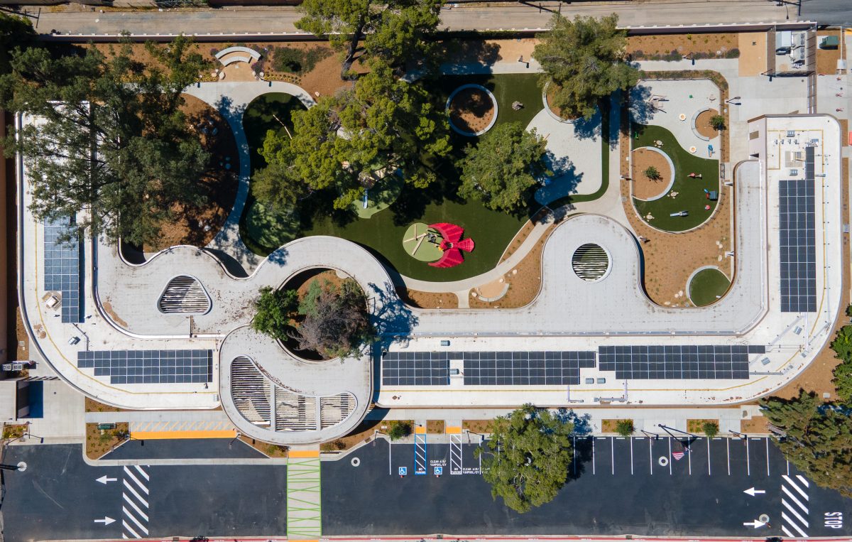 Located on the San Bernardino High School campus, the child development center features over 14,000 square feet of engaging indoor and outdoor learning environments paired with enclosed areas for play. Secure courtyards encourage hands-on exploration and social development, giving each student a strong foundation for future success. As a LEED Platinum and Net Zero Energy certified building, the center also sets a new standard for early childhood learning.